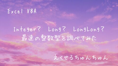 今回は64bit版VBAの整数型で使えるIntergerとLongとLongLongのうち、どれが最速なのかを調べてみました。